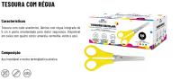 TESOURA ESCOLAR SIMPLES COLORIDA - C/ REGUA - 60UN